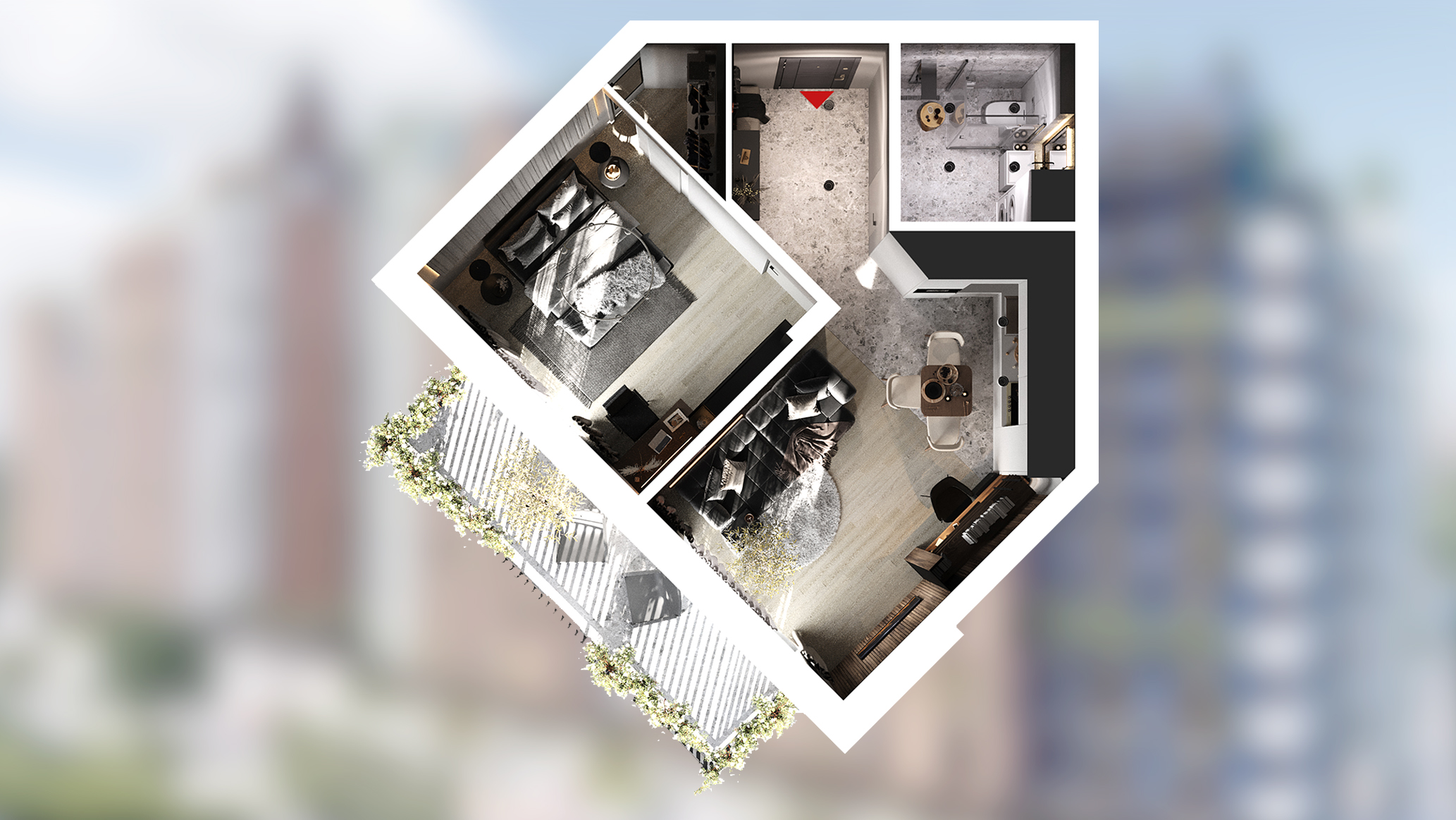 Индивидуальные открытые террасы. Больше пространства - ваш уголок свободы в сердце города. Отдыхайте с потрясающими видами и свежим воздухом.