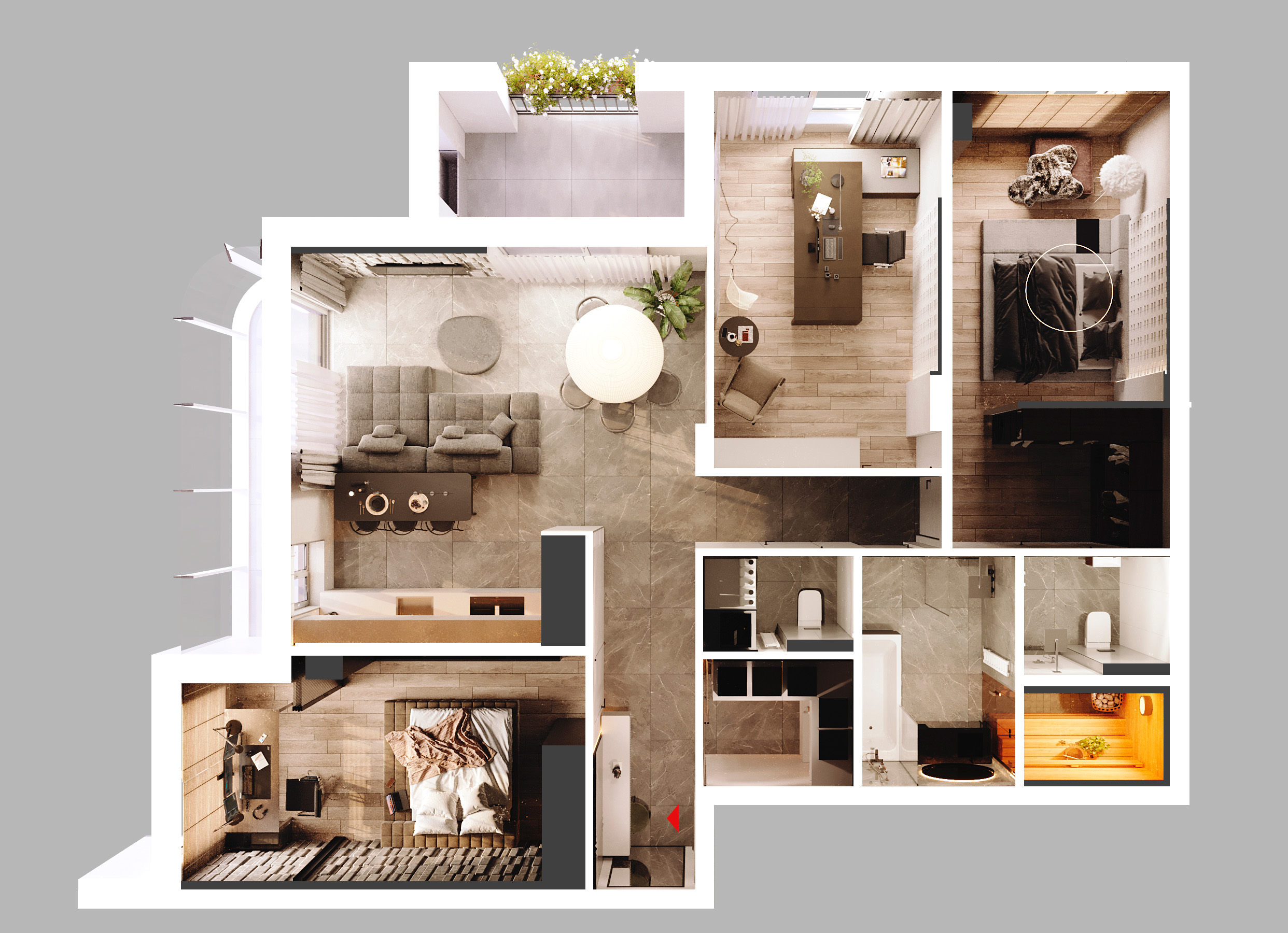 Индивидуальные открытые террасы. Больше пространства - ваш уголок свободы в сердце города. Отдыхайте с потрясающими видами и свежим воздухом.
