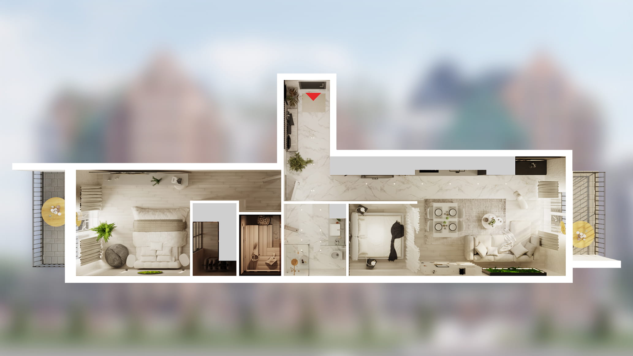 - Собственная терраса и сауна в каждой квартире;