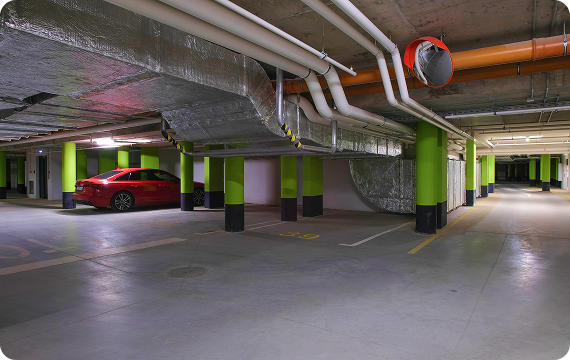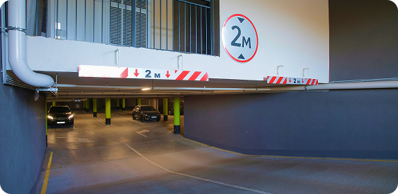 Наши паркинги продуманы и спроектированы с максимальным удобством для водителей. Мы предусмотрели цветовое кодирование колонн — каждый дом имеет свой узнаваемый оттенок, чтобы вы без труда сориентировались в любой момент. Также оборудована автоматическая система секционной подсветки паркоместа с датчиком движения.