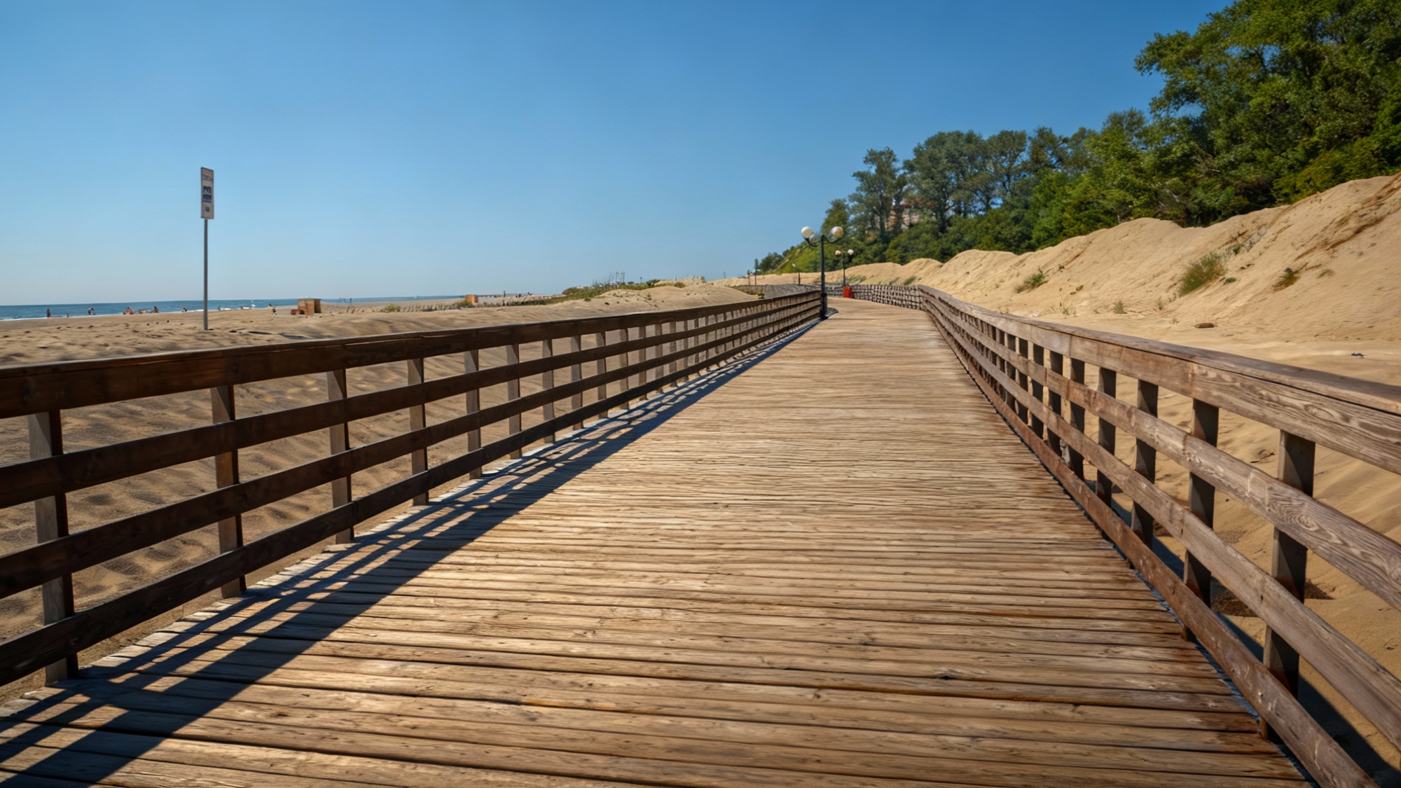 Если нужен цивилизованный отдых с душем, кабинами и лежаками, отправляйтесь на пляж в Янтарном с маркировкой «Голубой флаг». Широкая береговая линия позволяет расположиться подальше от шумных кафе и разложить гриль-сет прямо на песке. По соседству — велопрокат, водные аттракционы и смотровая площадка над карьером, где добывали солнечный камень. Дорога из Калининграда занимает час на автомобиле: удобно выехать утром, провести день у моря и вернуться к ужину.