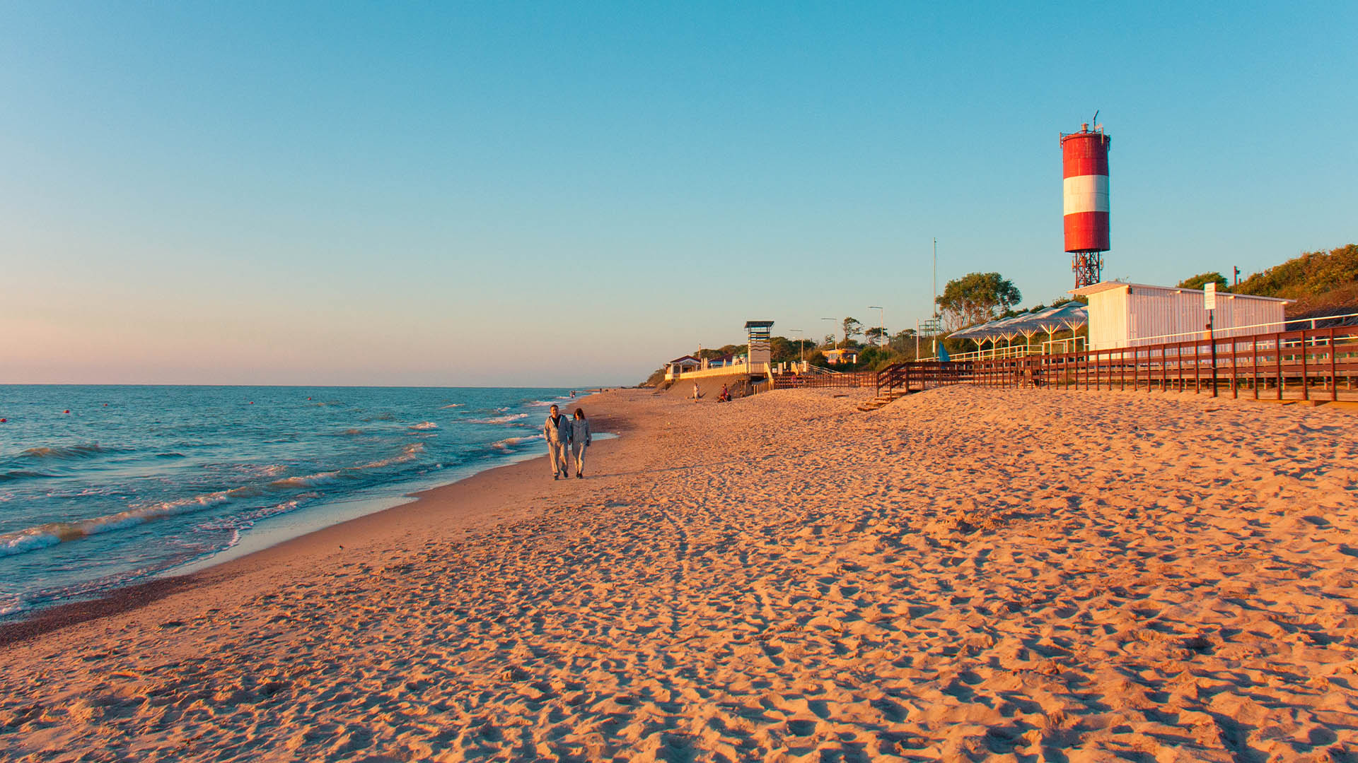 Если нужен цивилизованный отдых с душем, кабинами и лежаками, отправляйтесь на пляж в Янтарном с маркировкой «Голубой флаг». Широкая береговая линия позволяет расположиться подальше от шумных кафе и разложить гриль-сет прямо на песке. По соседству — велопрокат, водные аттракционы и смотровая площадка над карьером, где добывали солнечный камень. Дорога из Калининграда занимает час на автомобиле: удобно выехать утром, провести день у моря и вернуться к ужину.