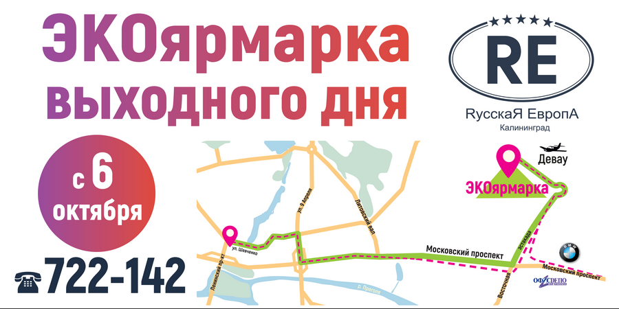 6 октября 2018 г.В Калининграде при поддержке Правительства Калининградской области открылась Фермерская Ярмарка выходного дня «RусскаЯ ЕвропА» на месте большой перехватывающей парковки P+R, построенная частным инвестором к чемпионату мира по футболу. Товары по доступным ценам теперь можно приобрести каждую субботу и воскресенье с 8:00 до 17:00