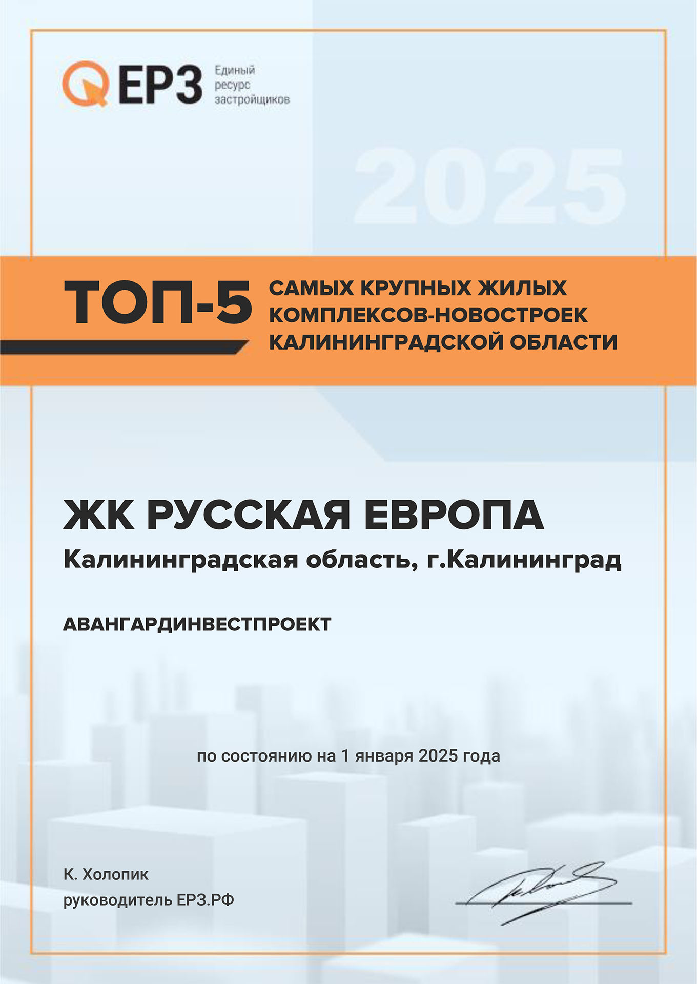 Быть лидером отрасли — это результат упорной работы нашей команды, партнеров и доверия со стороны покупателей. Мы благодарны каждому, кто выбрал «Русскую Европу» своим домом, и обещаем продолжать радовать вас новыми достижениями. Признание от ЕРЗ.РФ вдохновляет нас на дальнейшее развитие и совершенствование.